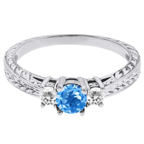 0.61 Ct Round Swiss Blue Topaz White Topaz 14K White Gold 3-Stone Ring